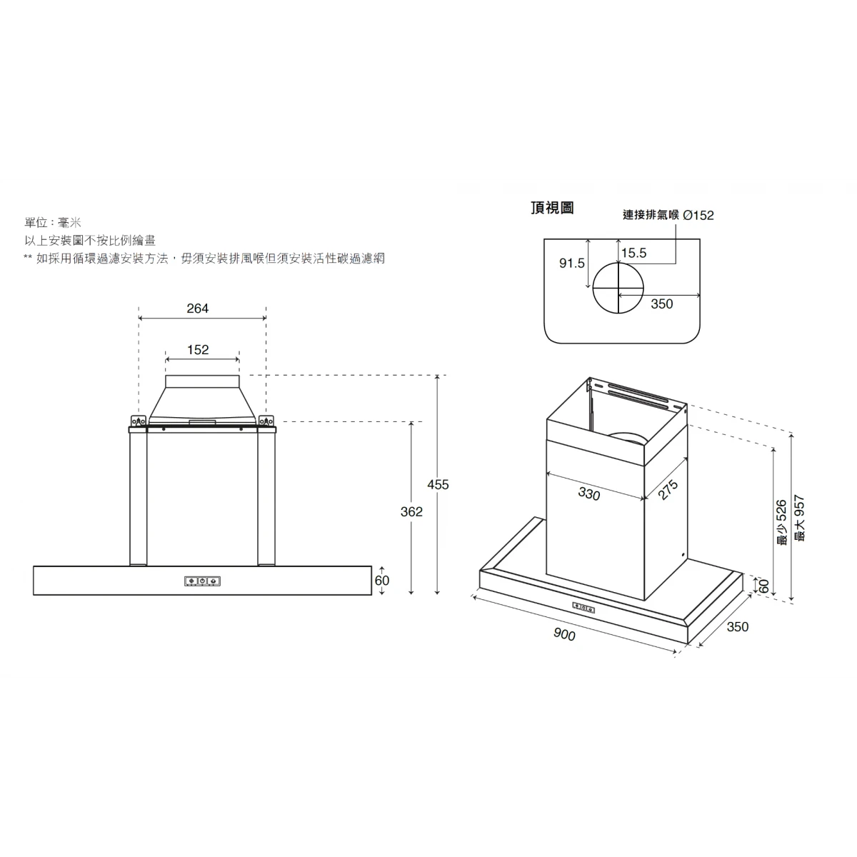 尺寸:高 526 mm X 闊 900 mm X 深 350 mm