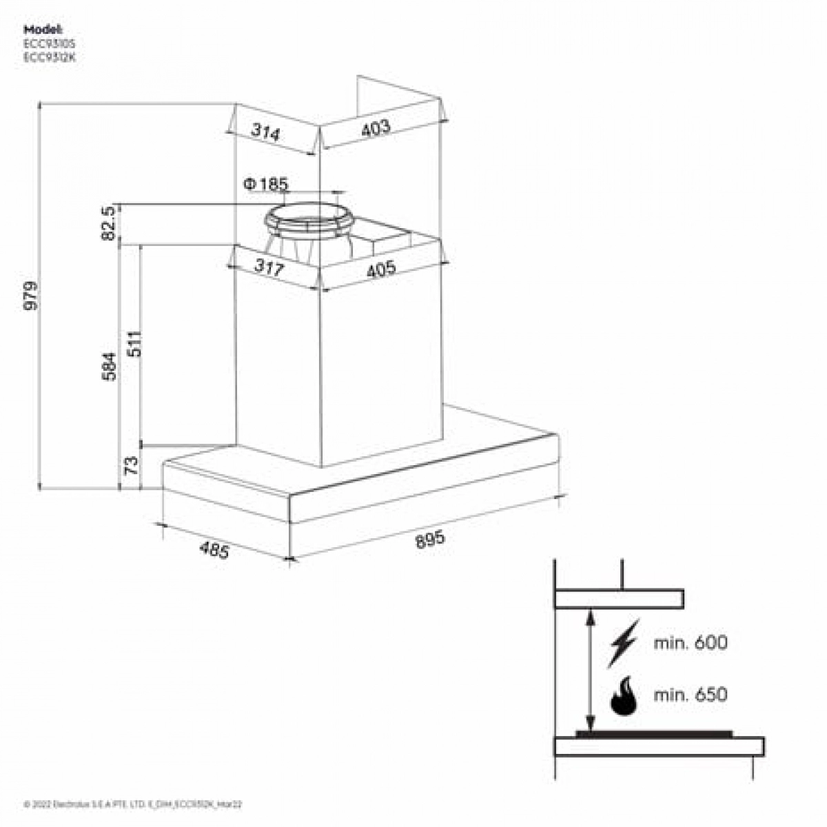 Electrolux 伊萊克斯 ECC9312K 90厘米 1174m³/h UltimateTaste 700 掛牆煙囪式油盃抽油煙機
