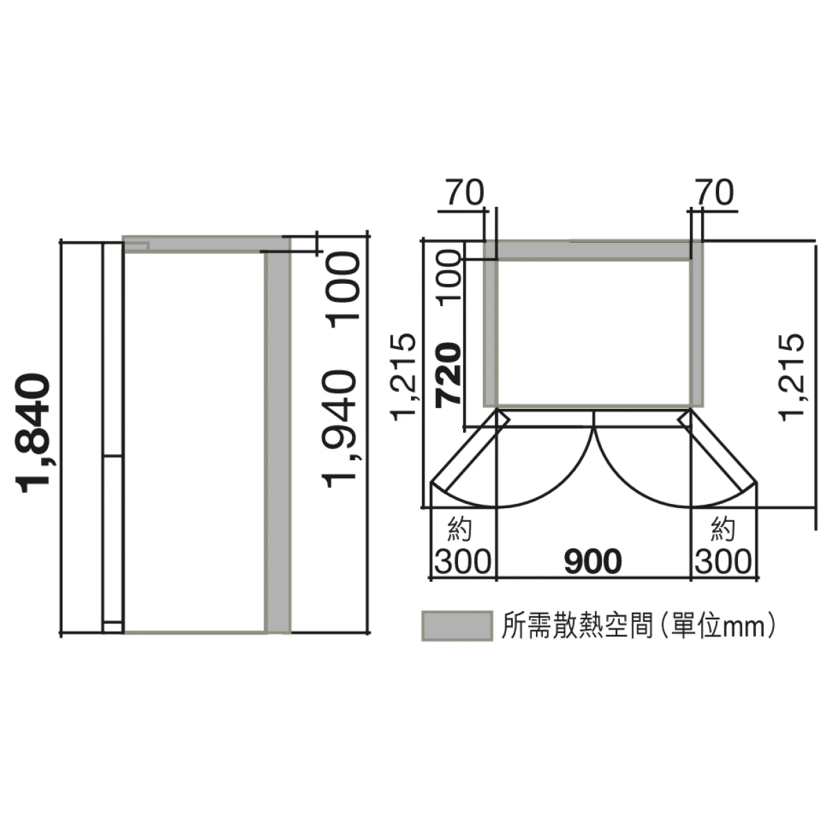 尺寸:高 1840 mm X 闊 900 mm X 深 720 mm