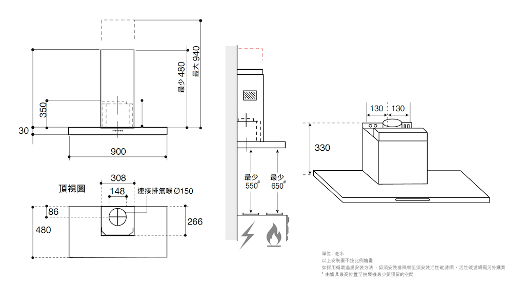 尺寸:高 510 mm X 闊 900 mm X 深 480 mm